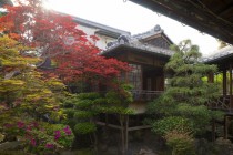 北国街道 安藤家は、秀吉の命を受けて長浜の城下町を整備した「長浜町十人衆」のうちさらに有力だった「長浜三年寄」の一家として活躍した安藤家が明治38年から大正4年にかけて建てた近代和風建築だ。安藤家の離れ「小蘭亭」は、北大路魯山人が描いた襖絵や天井画などで彩られていることで有名で、年に4回特別公開されている。