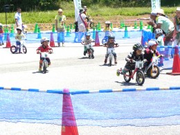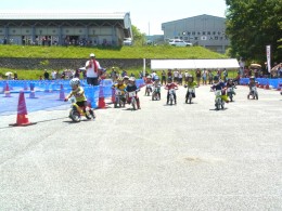 2014年5月31日(土)・6月1日(日)の2日間、滋賀県犬上郡多賀町役場横の特設会場で、ランバイクレース「ランバイクチャレンジシリーズ(R.C.S.)2014 SHIGAラウンド」が開催され、各日約300名の選手が出走した。天気に恵まれたのは幸いだったものの、季節外れの炎天下。出場した選手たちは、カンカン照りの暑さのなか、それに負けないくらいの熱いレースを繰り広げた。