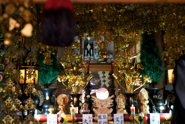 そしてもうひとつ。これは日本で唯一、不動院だけだと思うのだが、神仏が習合しているのだ。祭壇の最上段には「四面火焰不動尊」(毎月28日御開帳)の御厨子、手前に御神体である鏡が祀られている。僕は、「明治維新後の神仏分離が行われる以前は、こんな感じではなかったのか!」といつも感動するのだ。