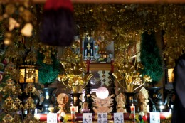 祭壇の様子が違うなと思ったのは、「四面火焰不動尊」の御厨子の手前に、以前から祀られている御神体の月(銀色)の鏡、そして更に手前に日輪の鏡が祀られていたからだ。