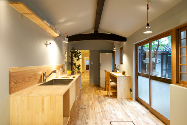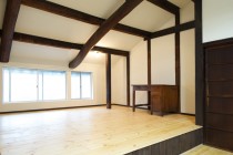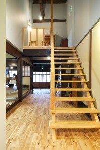 全国で急増するシェアハウス。先日、長浜でも町家を改装したシェアハウスがオープンし、内覧会が行われた。明治6年に建てられた醤油屋の商家を全面的に改装したこのシェアハウスは、当時の屋号をそのままに「絹市」と名付けられた。玄関を入ると土間が広がり、母屋の一階部分は共有スペースとなっている。母屋の二階に二部屋、さらに中庭に面したキッチンの奥に蔵を改装した二部屋、合計四部屋が住居スペースだ。キッチンの屋上にはバルコニーが設けられ、中庭から上がることができる。築140年以上の建物だが、内部はもともとの意匠を残しつつ、古さを感じさせない現代的な空間にリフォームされていて、古いものと新しいものが見事に調和している。こんな家なら僕も住みたい!と思ったが、すでに四部屋の入居者は決まっているという。