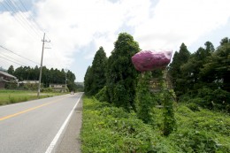 実はこれ、サツマイモである。国道365号線の一本山側の道を関ケ原方面へしばらく行くと右側にある。どうして今まで気づかなかったのか…、止まってゆっくり観賞したいと思うほど、リアルなサツマイモだった。名産なのだろうか…、車を止めて写真を撮った。草が絡みつきはっきりしないが、どうやら「弥高いも園」と書いてある。
