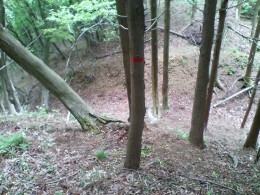 虎口を抜けると人の手で平坦になったことが確認できる曲輪が並び、その奥には堀切と呼ばれる空堀のような掘削の痕跡、その奥には二か所の主要な曲輪が連なっていた。メインと思われる曲輪には低いながらも石積の跡もあり、その奥に急こう配の下り坂から堀が浅いながらも三連の堀切が繋がっていた。