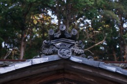 僕は、波うさぎの紋様(竹生島紋様)の在処をずっと探しているから、神社を訪ねたときには、瓦や社殿の彫り物が気になる。波を奔るうさぎの姿はイナバの白兎(素兎)を連想させ大国主の記号だとも思っている。御祭神が「大己貴命」だと知り、改めて社殿を探すと果たして波の上を跳ねるうさぎの瓦が本殿中央の破風の真ん中にあった。自説では、うさぎは必ず対で存在する。前を見るうさぎと振り向くそれ、或いは、波の上に描かれたうさぎと波の中に描かれたそれ。まず、見つけた波うさぎは、波の上を振り向いている姿だ。必ず前を向いている瓦があるはずだが、見つけることはできなかった。本殿の背後を見ることができなかったが、多分、そこにあるはずだと思っている。機会があれば見てみたいものである。