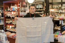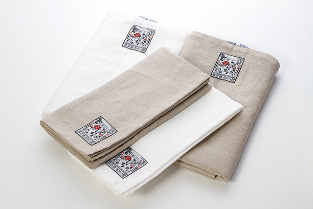 夢京橋あかり館では、バスタオルだけでなく、近江麻布を用いた、フェイスタオルや布巾などの商品も用意している。土産というよりは、日常のライフスタイルとして麻を取り入れることを考えたい。