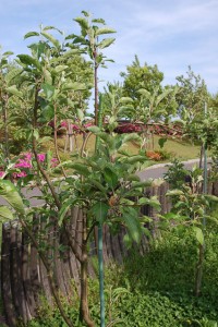 会員限定のリンゴ園を案内していただいた。「平成の彦根りんご」をはじめ、全国のワリンゴや野生種がちょうど花の盛りを終え、若葉の中に小さな実をつけ始めていた。