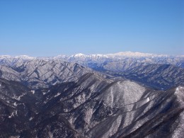 穏やかな天候だと思っていたが山頂では身を切り裂くような冷たい風が吹き荒れていた。手元の温度計は1度を指している。体感温度はマイナス5度、いやもっと寒いかもしれない。しかし、空気が澄んでいるため眺望は最高だ。北東には白山から北アルプス、乗鞍岳、御嶽山、南東には、霊仙山をはじめとする鈴鹿山脈、そして湖西の比良山系もよく見える。ひとしきり眺望を堪能したあと、すぐに下山することにした。寒すぎてゆっくりご飯を食べる余裕もなかった。