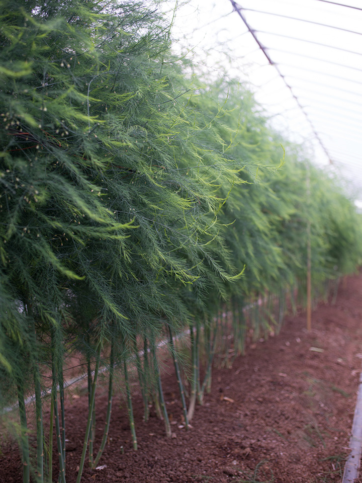 アスパラガスは春から夏にかけて出てくる新芽を食べる野菜だが、ハウスでは光合成をさせ、養分を根に蓄えさせる立茎(りっけい)という作業が行われていた。僕はその風景を見たのだ。