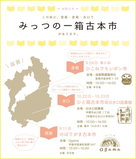 今年の秋は、彦根・水口・信楽で三つの一箱古本市にかかわることになっている。
