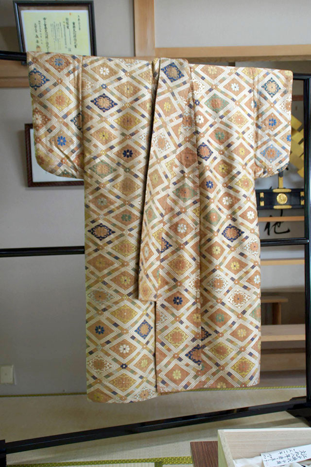 ひとつの集落にこれだけの文化財が保管されていることが何とも驚きなのだが、中でも室町末期から桃山前期の能衣装と言われる「紅地花唐草入菱文唐織」(国重文)は圧巻だ。近づいて見ると(重文に近づけること自体すごいことなのだが)文様ひとつひとつ、糸一本一本の美しさに息をのむ。400年以上の時を超えて、ここに美しく在ること、その技術と、それを守る人々の思いに神々しいものを感じる。