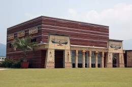 エジプト館の建物は、高月に移される際に、周囲の風景にあわせて新たに建てられたものである。平日は門が閉じられていて、傍らのインターホンで連絡をとればスタッフが開けてくれる。これは、事前に連絡を入れることで、秘仏を拝観することができる観音堂見学のアイデアを取り入れたものだそうだ。