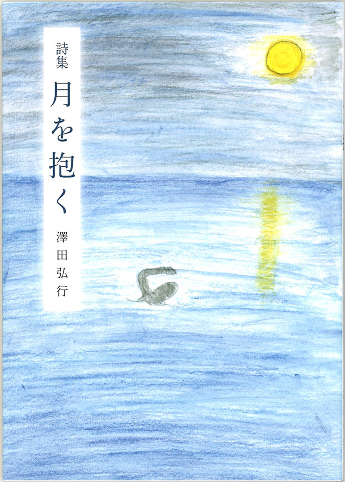 「 カバーの絵は孫娘の「椿」(9歳)にお願いした。表の絵は表題作「月を抱く」を読んでもらって、また、裏の絵は「おおなきしちゃった」を椿の妹の「環」(4歳)をモデルにして描いてもらった。いかにも家族的で個人主義的な詩集の表現となった」。