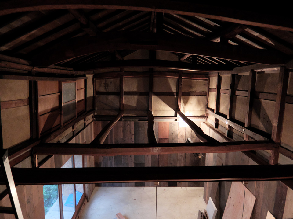 「takumi apartment」には現在、天保7年(1836)建築の太い丸太をふんだんに使った蔵アパート2区画に個性豊かな二人が住み、道路に面した町家を改装したビストロ「dub plate」がある。そして、アトリエに最適な独立した蔵には現在、住人はいない。どの建物も梁や柱から築174年の風合いが垣間見える構造となっている。