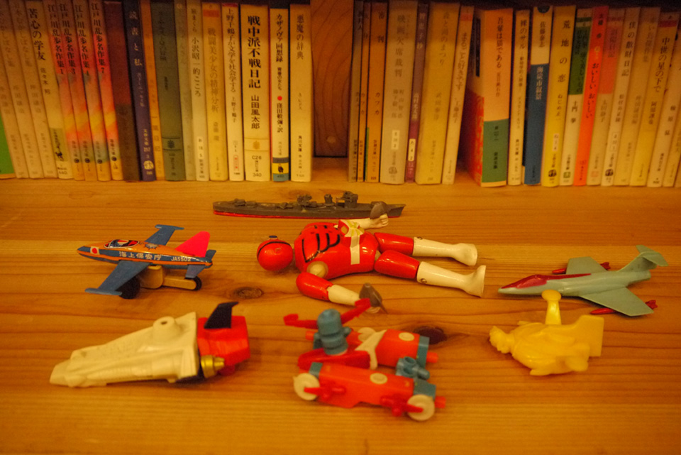 首がぐらぐらするタイプの小さなこけしばかりをくださったひともいれば、わたしが長野県出身と知って、長野県が舞台になった映画に出てくる犬の文鎮をくれたひともいる。「古本屋だから。火事が起きたら使えるやろ」とパンダのかたちの小さな消火器をくれたひと、「あなたの店に似合いそうだから」と人形をくれたひと、「本立てが付いていたから、あんたの店を思い出して」と、ブックエンド付きの地球儀をくれたひと…思い出したらきりがないほどだ。店の本棚などの什器も、不要になったものを引き取らせてもらってきて、大部分が構成されている。