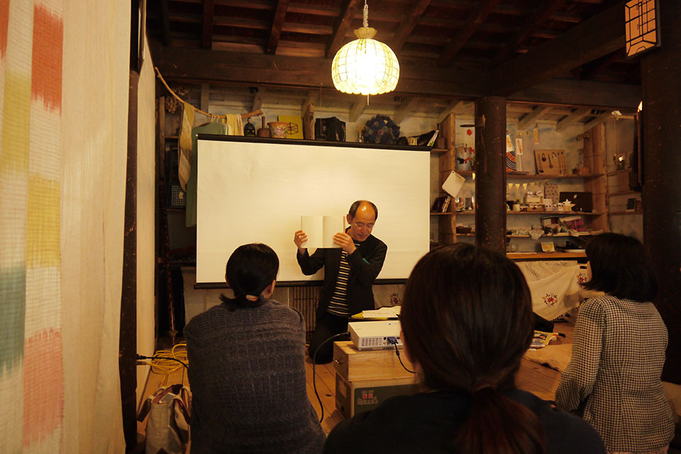 細馬さんの読み聞かせから始まり、絵本そのもののお話はもちろん、後半に至っては「現代詩を読む装置としての絵本」という試みにまで話が広がった。細馬さんの「詩を書写して、絵本にするとしたら、どこでページをめくるようにするだろう?と考えてみてください」という指示のもと、参加者は谷川俊太郎さんの代表作「二十億光年の孤独」や「かっぱ」を書き写し、絵本にすることを思い浮かべながら、詩の区切りを考えるという作業に取り組んだ。文字数の少なさゆえにあっという間に読むことができてしまう詩も、書き写し、区切りを考えることで、詩に流れる時間を感じることができる。さらに参加者の考えた区切りで詩を読み上げながら、白紙のノートをあたかも絵本のようにめくるという「エア絵本」を細馬さんがやってみせると、会場からはため息がこぼれた。ことばに応じてページをめくる、めくることで、ことばに時間が流れる。ふだん当たり前にしている「ページをめくる」という行為の意味がせまってくることに、素朴に驚くような時間だった。