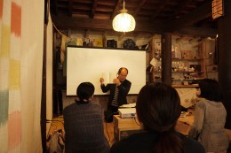 一昨年から、半月舎で「かえる先生」こと細馬宏通さんのシリーズ講座「かえるの学校」を開いている。滋賀県立大学の教授で人間行動学を専門とする細馬さんは、音楽・マンガ・映画などのさまざまなジャンルに通じており、その分析的な視点から読み解いてもらうと、知っているつもりになっていた作品や作家の、思いもよらない姿が見えてくる。隔月のペースで金曜日の夜に半月舎で開き、繰り返し来てくださる方も多い人気講座となっていたが、今年度は少し趣向を変えることにした。