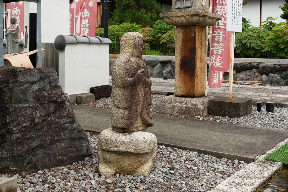 頭の中が仙人モードだったからだろうか、彦根の本町にある宗安寺の参道の石像が蛙の上に乗っているのに気付いた。宗安寺には行者堂があるので、役小角(えんのおづの)の石像だと思っていたが、がま仙人、「劉海蟾」に違いない。