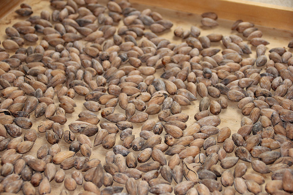 ところで、喜平さんがもてなしてくれた実は、バイではなくカヤの実だった。昭和48年、仕事で出かけた日野町でカヤの大木を見つけ、実を拾って帰り翌年畑に捲いた。13年後に初めて実がなり、「カヤバイ」を作る方法で処理している。