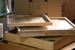 奥居仏具社長の奥居雅彦さん(65歳)はカロム ミニ・スリムの製造に至った経緯を「本業のかたわらカロム盤の製造を始めて30年以上になります。公式盤より小さな盤はないですかという問合せがあり、ひと回り小さく薄いカロム盤を造ることにしました。弾く力が弱い幼稚園児や小学校低学年の子どもにとっては、公式盤ではなかなかポケットに入れるのは難しく、カロムの面白さを知るまでに嫌いになってしまうかもしれません。小さな頃からカロムに親しんでもらえたらと思いました。展示もしていますのでご来店いただけると、大きさの違いを実感していただけます」と話す。放課後児童クラブや、お孫さんのためにという問合せが多いそうだ。