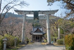 そのひとつが、荒神山の麓にある「荒神山神社遙拝殿」(清崎町)である。遙拝とは、遠くへだたった所から拝むことをいう。荒神山神社は標高284.1メートルの山頂にあり、参道の本坂入口から遙拝できるようにと昭和34年(1959)に建てられた。