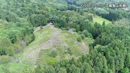 古橋亀山茶畑 ©ながはま森林マッチングセンター: ながはま森林マッチングセンターウェブサイトの「ドローンで見た湖北の森」で動画を見ることができる。
