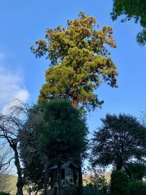 杉の木は、古墳時代後期のこんもりと盛り上がった横穴式石室の外周に根を張り聳えていた。作業が始まると、枝が切り落とされ、あっ、という間に、杉の木など初めからなかったような景色があった。250年かけた景観は、歴史的な記憶や個人的な思い出も、3時間ほどで失われたが、新しい時代を生きる決意のようなものがあった。