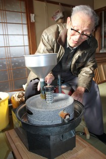 そば粉は水を加えて練ったらいいと直感で思ったが、最初の5年くらいは麺にはならず、出来損ないのそばでも家族は文句も言わずに食べた。山芋をつなぎに使うと良いとお母さまが近所の人に教わってきたときは、山芋がないので卵白を使ってみたりもした。試したことも色々なら、昭和30年ごろに買った粉砕機は月給の2倍以上の値段だったこと、中国から韃靼(だったん)そばの種を買い求めた際には、種の中にたくさんごみが混じっていたことなど、喜平さんのそばの話は枚挙にいとまがない。