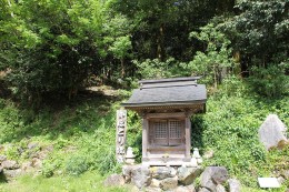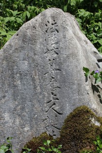 上丹生には「こねり山」と呼ばれる山があり、こねりは「子祈り」が転じたもので、尊意が生まれる前、両親が子宝を授かりたいと祈った山がこねり山なのだとか……。そして山から流れる清水は「法性坊、初洗い(うぶあらい)の水」とされ、それは「いぼとり水」として知られている。いぼとり水の近くに立つ看板にはちゃんとそのことが書かれていて、近くには「法性坊尊意上人誕生□」と刻まれた石碑もあった。□は苔に埋もれて読めない。おそらく「地」だろう。いぼとり地蔵堂の背後に控える一段高いところは「法性坊跡」と伝わっている。
