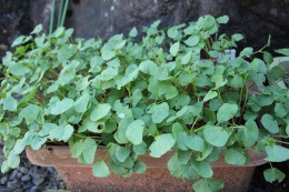 現在、喜平さんは玄関先のプランターにそばの種を播く。そばなを食べることが目的だ。種を播くのは4月下旬から10月下旬までいつでも良く、季節によって10日から25日、本葉が2枚ほど出た時が食べ頃で、その後も新芽を3度くらい摘み、一つのプランターのそばなを食べ終え、また欲しくなると種を播く。この日のそばなは2週間前に種が播かれ、2枚目の本葉が出始める食べ頃のものだった。