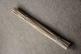かつて古橋では死者を弔う野辺送りが行われ、黒打掛に白手拭いを被った女性に続いて松明、三具足、提灯、輿と呼ぶ棺、一般参列者らが行列して弔い場所である〝さんまい〟へと行列したことを書いた。さんまいには南無阿弥陀仏と彫られた石と、二つ並んだ切り石、黒く平らな石があり、棺は切り石の上に、三具足などは黒い石の上に据え、僧侶の読経、近親者らの焼香が行われた。一般参列者は焼香はせず、送りにだけ参列、焼香を終えた喪主らは来た道を戻り、〝礼場(れいば)〟と呼ばれる場所で参列者に頭を下げ謝意を伝えたそうだ。さんまいから礼場への道の両脇には麻殻で作ったろうそく立てにろうそくをそれぞれ6本立て、道を照らしたそうだ。喜平さんは、かつての野辺送りは夕方に行われ、山仕事や農作業などの仕事を休むことなく、皆で弔える配慮なのだと言われた。
