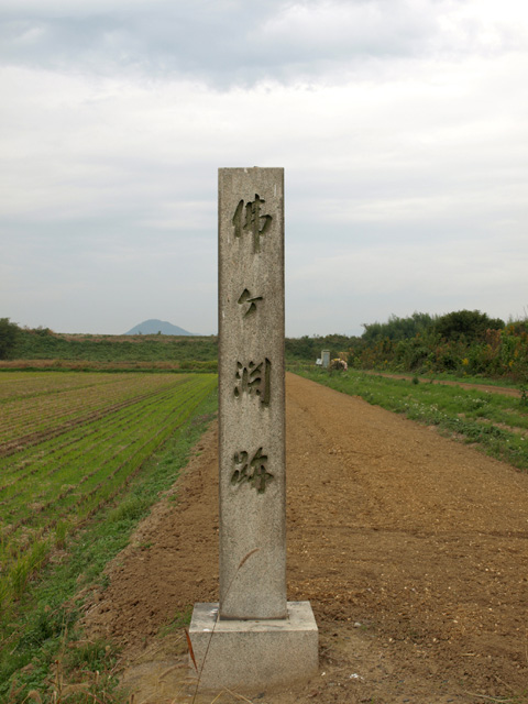 長浜市川道町の西、集落のはずれ、「佛ヶ淵跡」と刻まれた石碑が姉川と山本山を背景に建っている。