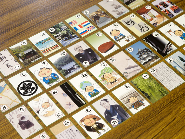 彦根城博物館が製作した「直弼かるた」が好評だという。このかるたは、昨年、博物館で開催された小学生向けのイベントで作られたものが原型となっている。当時は7セットだけだったが、より広く郷土の偉人・井伊直弼の生涯や業績を知ってほしいと、一部改良を加えこのたび新装版が完成した。500セット製作し、市内の小学校へ配布。100セットのみ限定販売となった。「限定」という言葉に弱く、あわてて手に入れた。
