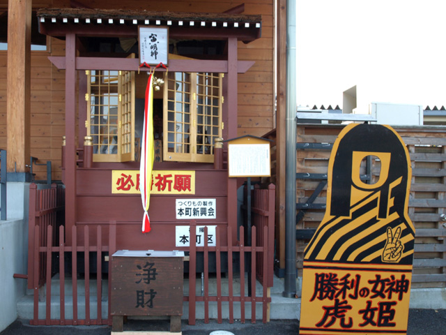 今年は寅年。虎つながりの縁起にあやかろうと阪神タイガースグッズの売れ行きが好調らしい。虎姫駅前には、阪神タイガース勝利の神、「虎神殿」があり、県外のバスツアーも組まれ、ファンが参拝するという。