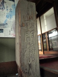 又十屋敷の玄関には短い木柱が置いてある。柱には「百間橋」と刻まれている。「百間橋」はかつて彦根の松原内湖(大洞内湖)に架けられた橋だ。