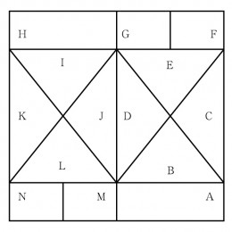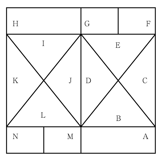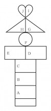 私がしていたものは左図が基本形で、石はAの下に置くことからはじめます。行き帰りのあたりは同じです。でも石は順番に投げ込まないと、最初からやり直しだったような気がします。