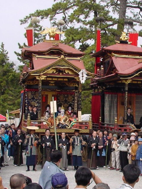 行きは曳山の山組地域の人々が、還りは「七郷」と呼ばれる山組の周辺地域の人々がかつぐ。七郷は城下町が栄える以前からあった村々である。