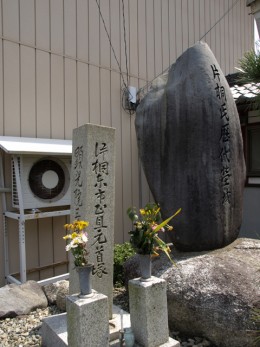 実は首塚は、且元の祖先にあたる片桐一族の菩提寺の跡なのだという。碑のある辺りは寺名である「円通寺」が小字名として残っている。
