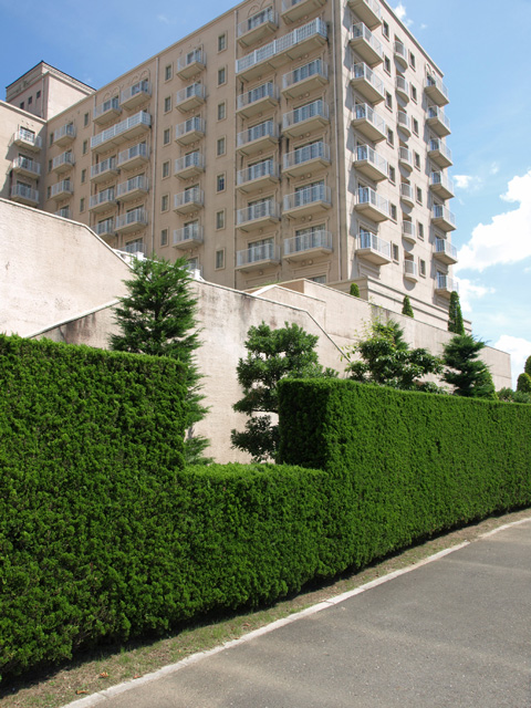 米原のプライベート・リゾート「エクシブ琵琶湖」。湖周道路に沿って生垣が植わっている。丁寧にほぼ一直線に刈り込まれているのだが、一部分すっぽり凹んでいるところがある。その時までは気にもしていなかったのに、突然、何故だろう「?」と思った。