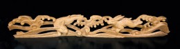 ちなみに、家紋や焼き物の図柄で親しまれる日本の伝統的文様「波兎」は、「竹生島文様」という名を持っている。湖面に映る月、その周りに兎が湖上を奔る謡曲『竹生島』に由来するのだろう。