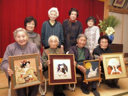 甲良町尼子に「尼子東会(あずまかい)」という押し絵グループがある。尼子に住む女性たちが、押し絵づくりの趣味という共通点をきっかけに集うようになって10年、現在は9人が交流を続けている。