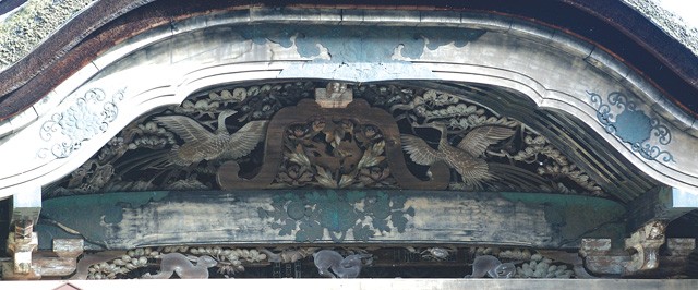 目的は、波と兎の文様(竹生文様)の写真を撮ること。竹生島文様というからには、この島にも文様はなければならない。確かに兎は、唐門にあったが、波は彫られていない。僕が今まで見てきたどの竹生島文様とも異なっている。3匹の兎で構成されている竹生島文様は初めてである。謡曲「竹生島」にあるように「兎も波を奔(はし)るか」の一節を想うならば、一匹は彫り物から抜け出し、湖面にいるのだということになるのかもしれない……。
