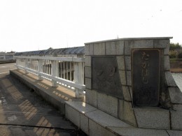国道8号線から聖泉大学方面へ向かう道中に「高橋」がある。欄干の上部が瓦風の造りになっている。橋を管理する県に尋ねると、城壁をイメージしているという。橋を南に渡った肥田町に、かつて肥田城があったことにちなんでいるそうだ。
