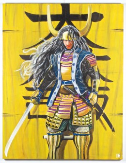 『この絵は関ヶ原合戦、小早川秀秋に裏切られ、まさに絶体絶命の場面をイメージしたものです。「史上最悪の危機を乗り越える史上最大の方程式」に生涯をかけて挑む数学者のような、怯むでなく心躍らせる表情で描きました。(中略)おそらく権力やリーダーシップに興味の無かったであろう三成にとって関ヶ原の合戦は、勝敗より、よもすれば豊臣家のことよりも、日本全土の森羅万象の方程式に挑むことが重要だったと思えてしまうのです。』
