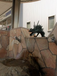 愛知川と国道8号線が交わる角に、セルフのガソリンスタンドがある。整備工場も備えた大きな敷地の一画に、龍の口から水が出ていた。