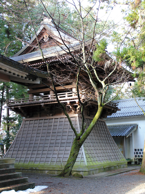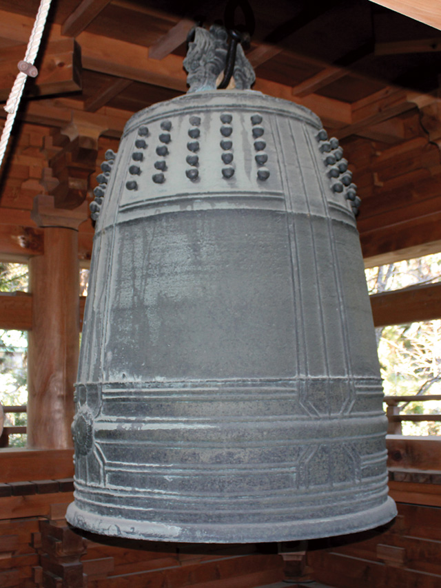 江たち浅井三姉妹の父、長政は幼名を猿夜叉といった。多賀大社には、浅井猿夜叉の名が刻まれた梵鐘が、参集殿のそばの鐘楼に吊るされている。梵鐘が奉納されたのは、天文24年(1555)のことだ。当時社内にあった不動院の初代住職・祐尊の呼びかけに応じた近隣の土豪122人が連名で寄進している。長政もそのひとりだった。