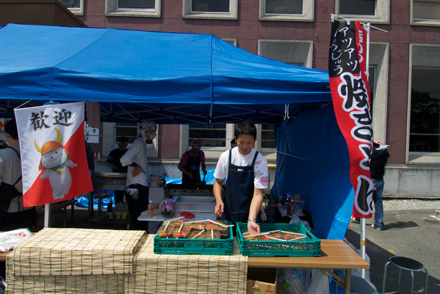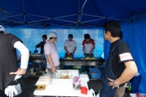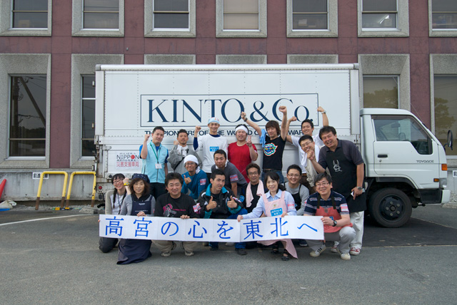 僕は高宮で暮らしているわけではないが、きっとこれには何か天啓のような理由(役割)があるのだろうと思った。メンバーは加藤さんが隊長、馬庭さんが事務局、その他、八木嘉之さん、日夏剛史さん、馬場元治さん、石川滋紀さん、和田正一さん、宮元純一さん。彦根から福島県いわき市のボランティアセンターまで、トラックとワゴン車で往復。土曜日、日曜日の2日間で焼きそば800食、フランクフルト300本を焼き、作業を終えて帰ってこられたボランティアの方々に手渡した。