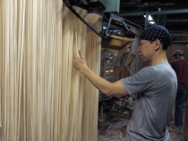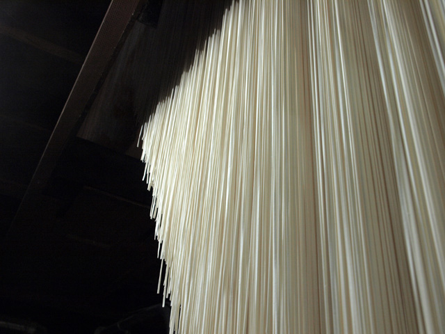 「乾麺製造での一番のポイントは乾燥です。打った麺を乾燥室に入れ、表面、中身を十分に乾かしていきます。この乾かし具合が麺の熟成度合いともいえます。天気の影響もあるし勘と経験の世界です」