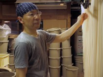 うどん、きしめん、そうめん、中華そば、そばはモロヘイヤやよもぎ、茶そば……。パスタ以外の乾麺ならつくることができる。ご主人の田中松司さん(47)は4代目だ。