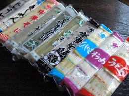 そうめん・ひやむぎ・きしめん・うどん各110円、中華そば125円、そば・よもぎそば120円、モロヘイヤそば220円、茶そば280円など(すべて1袋250g・よもぎそばは200g)、ケースでの購入は割引あり