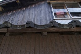 瓦の機能を果たすだけではなく、また、その家のアイデンティティーが刻まれているわけでもない。また、水の文様だけが並んでいるのでもなく、水・花・草と連続する。施主の意図は想像するしかないが、実にお洒落だ。